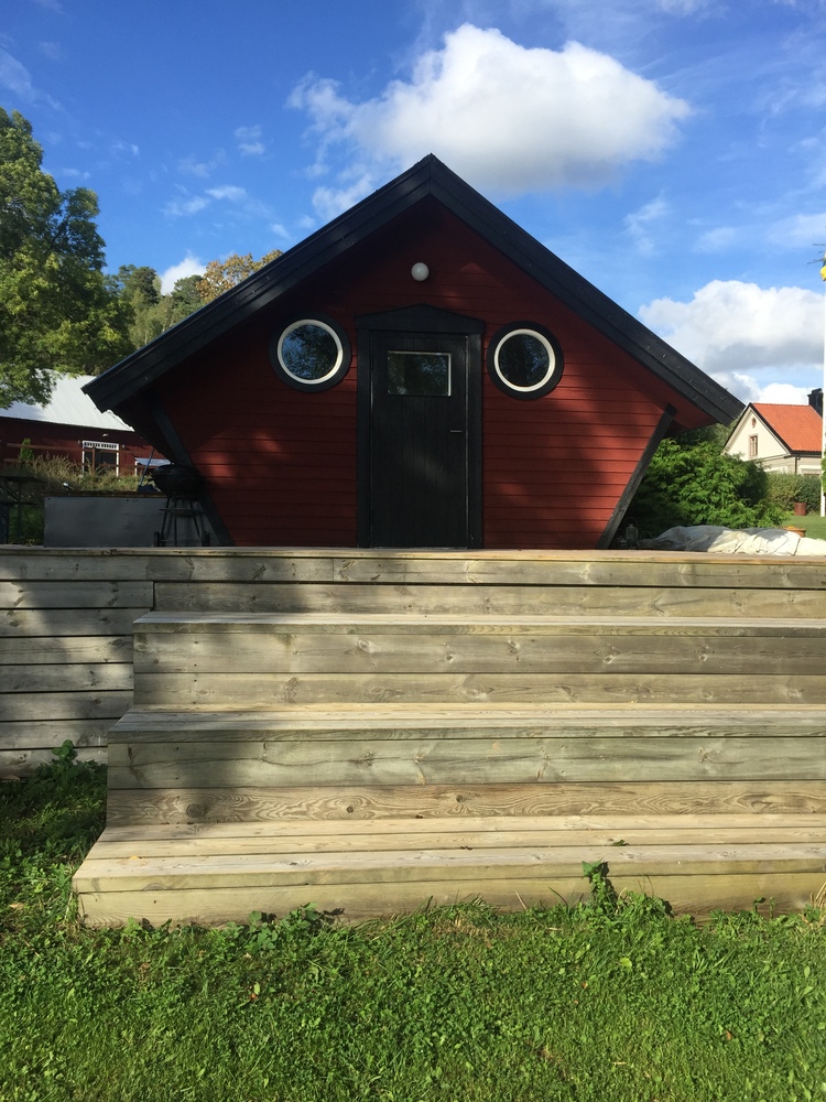 Detta lilla hus med sängplatser och bastu ligger precis vid en av Roxens finaste sandstränder och kan exempelvis bli en härlig och annorlunda bröllopssvit Det finns kyl, mickro samt te- och kaffekokare för enklare måltider
